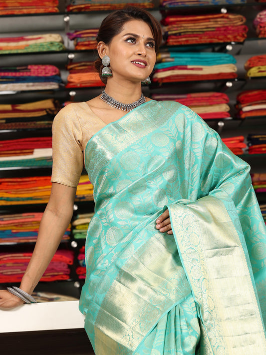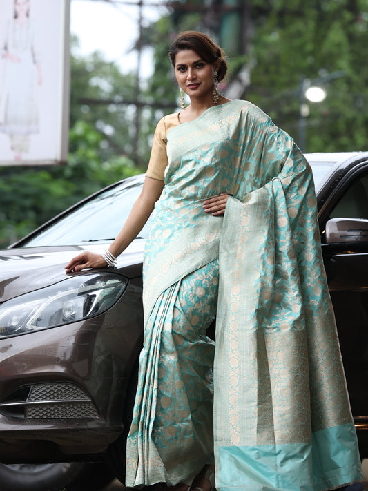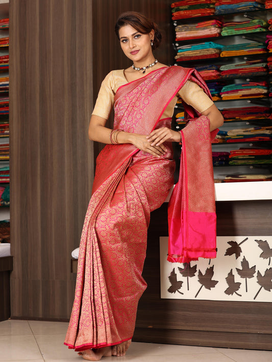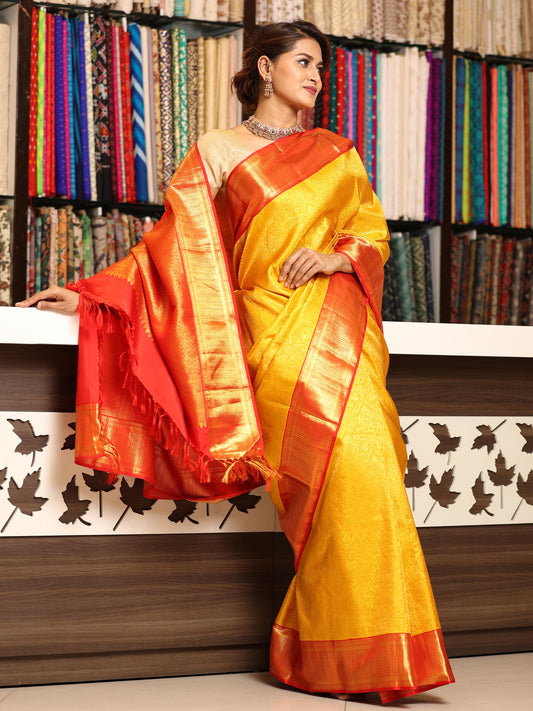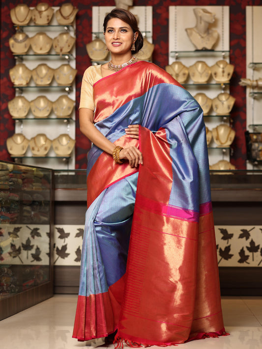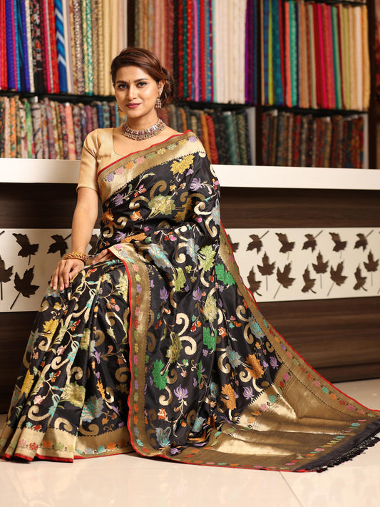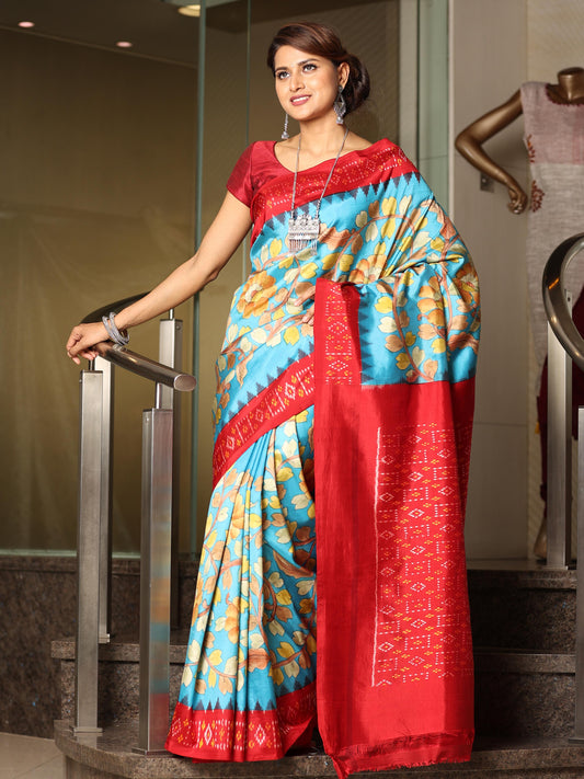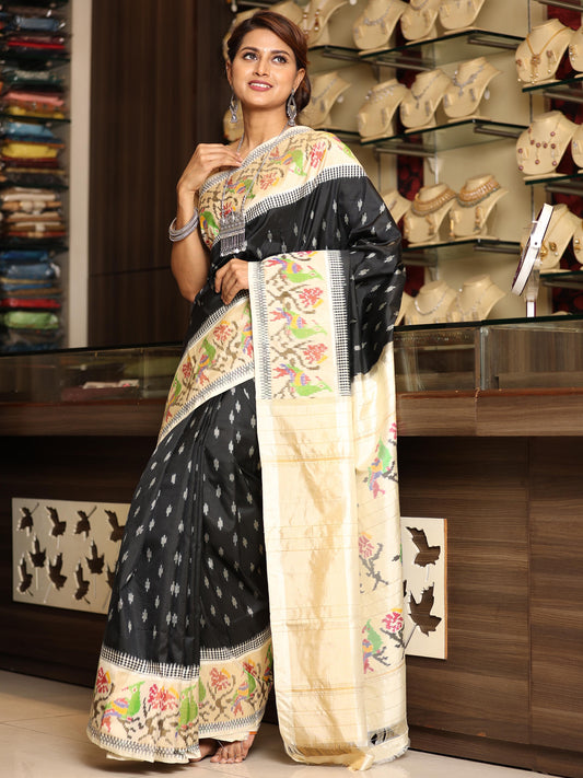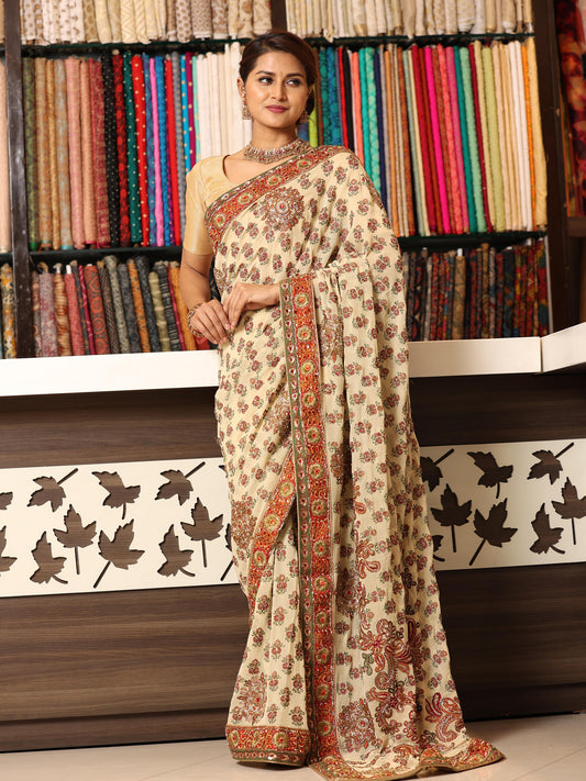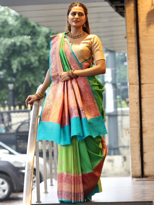 Tusson georgette hand woven saree with multi-colored border and pallu